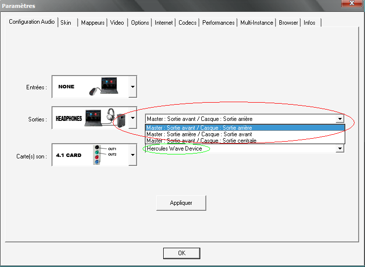 Par contre, dès que je lance une application pour écouter un titre musical via windows media player ou VDJ ... les soucis arrivent !