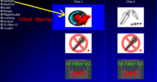 il faut faire un gliser déposer dans le chan 1 ou 2 puis active l'effet