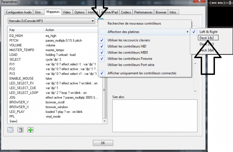 Allez dans Config --> Onplet Mappeur --> Option du Mappeur et cocher Platine 1 et Platine 2.