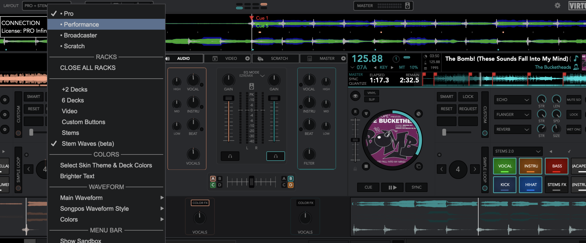 - VirtualDJ does have a way of displaying stem change information that is similar to Serato - the main waveform can show stem level changes, given you select an advanced (non-frequency) EQ mode.