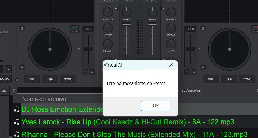 Fui para o tirateima, desinstalei e instalei novamente, ao abrir fiz a atualização do vdj e novamente apareceu a mensagem "erro no mecanismo do Stems" que para o Stems.
