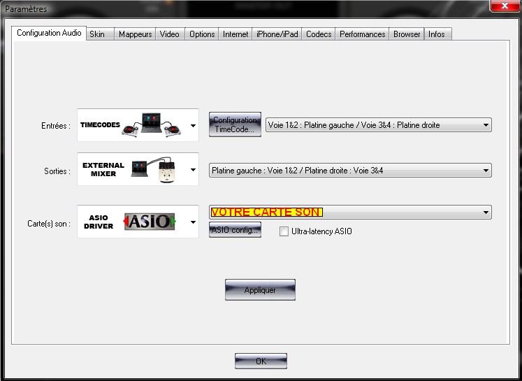 Dans VDJ, config timecode: