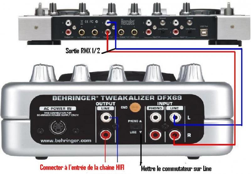 je pense qu'il faut brancher la RMX et l'effet beringher dfx69 comme cela
