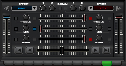 Wenn man den EQ-Fader für die niedrigen Frequenzen (eq_crossfader_low) erstmalig komplett zum anderen Deck bewegt, sind nicht nur noch die Bässe des zweiten Decks zu hören, sondern die Bässe beider Decks gleich laut. Sobald man danach "zusätzlich" dann den EQ-Fader für die mittleren Frequenzen (eq_crossfader_mid) einen Hauch in Richtung des zweiten Decks bewegt, werden auch endlich die Bässe des ersten Decks komplett unterdrückt, und nur noch die Bässe des zweiten Decks hörbar.
