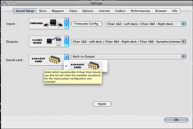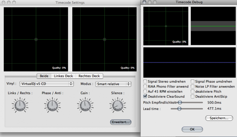 Ich starte das Programm (Version 6) und gehe in die Config. Sobald ich als Input die Timecodes angebe, kann ich bei der Soundcard nur noch "4in/4out" auswählen. Wähle ich beim Input "none" wird gleich VV angezeigt. Die Timecodeconfig ist hinfällig, da diese garnicht möglich ist. So sieht es dann auch aus: Quality 0%. Aus diesem Grund habe ich auch keinen Debug erstellen wollen/können. Ihr seht: Ich habe mich echt eingelesen und vieles ausprobiert.