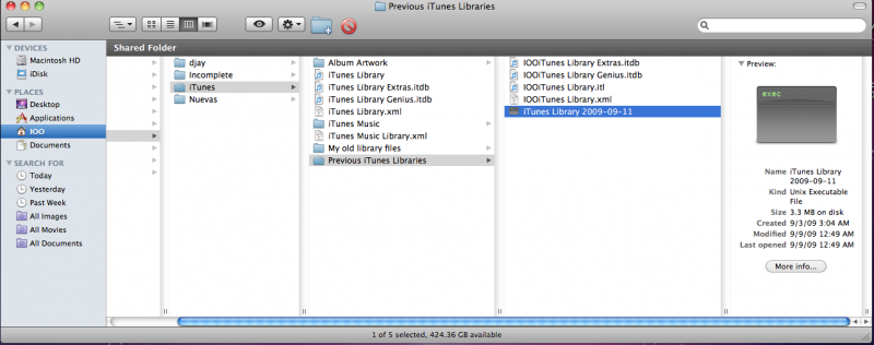 The itunes in my old account creates libraries with .itl in the file name. In my new mac account itunes doesn't create the extension in the file name. In the initials tastes that we made , we used new libraries created in the old account (remeber Dj Cyder?), thats why didn't worked.