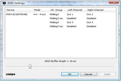 So, habs schnell an meinem Desktoprechner mit der aktuellen 7.0.2 LE (liegt in Deinem Downloadcenter) getestet. Wichtig ist zunächst, das Du die Firmware 3.11 (ww.vms4.eu) drauf hast und die aktuellsten ASIO-Treiber (www.vms4.eu). Den Asiotreiber wie folgt einstellen: