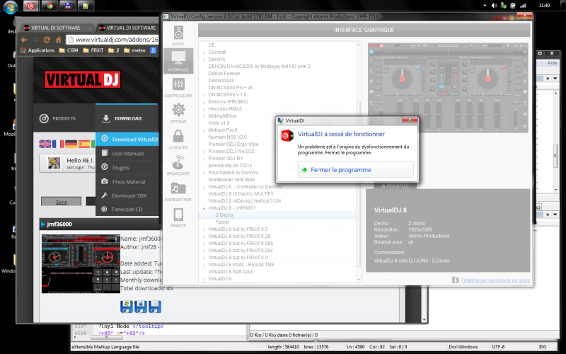 Dear Fruit, also I have downloaded the skin and VDJ 8 doesn't crash. Also it's a very good skin, thank you jmf36000 for the very good work!