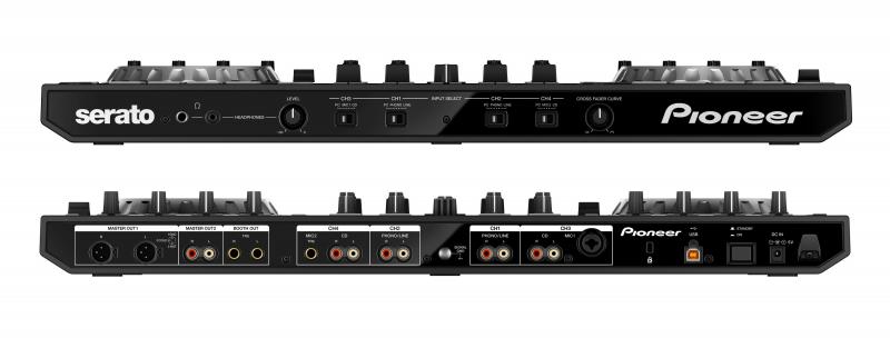 Output: Master Out x2 (RCA x 1, XLR x 1), Booth Out x1 (jack 1/4"), uscita Headphone Monitor x2 (1/4" jack, MiniPin), USB x1