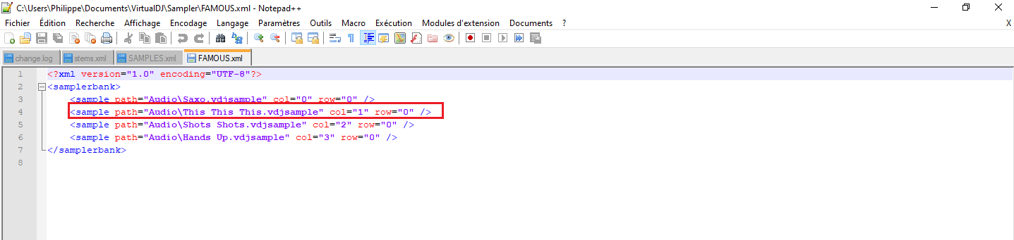 Alors ça fonctionne avec les samples de la Version 7 : saxo.vdj => saxo.mp3 => OK