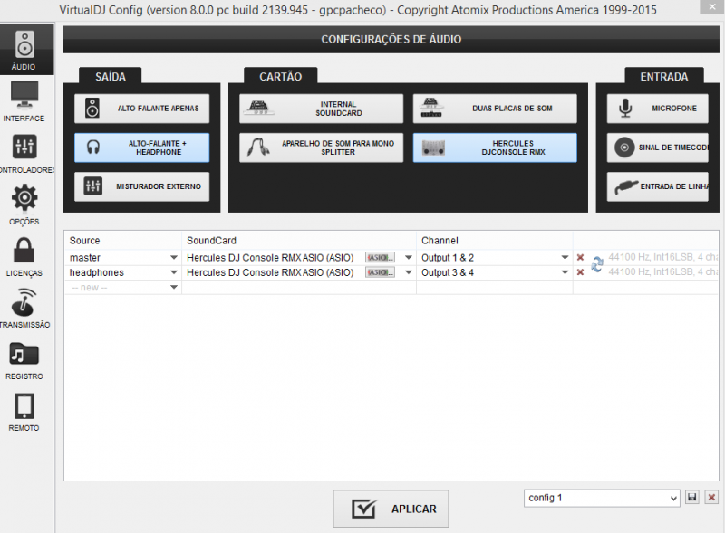 Após instalar o VirtualDJ 5 com sucesso em seu sistema, por favor siga as instruções de instalação que estão no manual do seu equipamento. Conecte seu fone de ouvido e sistema de amplificação ao seu controlador conforme indicado. Mas com uma ressalva: baixe e instale o driver e firmware mais recentes para seu controlador na página de suporte Hercules-Guillemont. Conforme já expliquei, os drivers que estão em seu CD de instalação são de 2010, então não devem funcionar bem em um sistema operacional recente. A Hercules tem em seu site de suporte drivers e firmware atualizados e compatíveis com Windows 8.1 bem como instruções para instalação, então por favor, baixe e instale os drivers, e atualize o firmware ANTES de pensar em abrir o VirtualDJ.