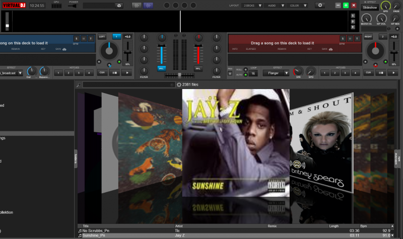 The left column was the folders, the highlighted folder showed the contents in the middle column. On the right is the mixer and two players. These were all separate windows and I DJed using the mouse long before controllers were invented lol.