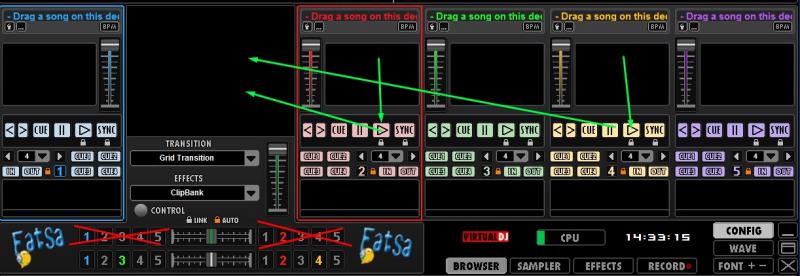 @ PhantomDeejay I would like the ability to 'Play on Take' WITHOUT having to allocate a player number. I would like to not use the allocated (play) boxes I have crossed out in Red. In other words to be able to just play directly. If Deck 1 is playing (left) & the next deck I want to play is 5, I want to just play it without having to allocate box 5. Thank you. Please if it's not clear let me know & I'll try to do a better diagram.