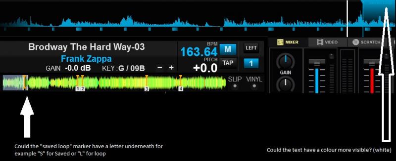 Also, would it be possible to have a visual indication of the loop start and stop in the track waveform (for each deck) where the cue points show up?