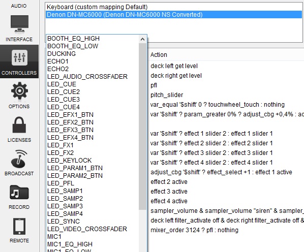 Is there a list of ACTIONS available to customize the specific LED colors of MC6000? The Key is listed, but can't find actions