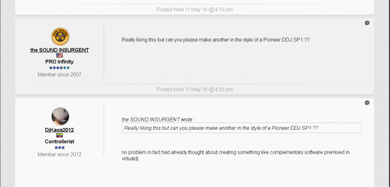 i would rather have the real thing too but what i am doing is making a remote setup that i can take anywhere and not have to carry half a ton of equipment the browser waveform skin i did not create it was one i came accross on a facebook page it allready had the pioneer thing on it and too be honnest the virtual dj remote skins that are out now are not very apealing to the eye so i started customising skins into single deck skins left and right deckthe only thing i struggled with was getting the skin to only show a mixer as i already had the 3 other parts and i know having the real deal is better but we are not all well off with money and what you said was said by record junkies when cd decks first came out then was said again when midi controllers came out and is again being said now its progressing into touch screen i would of thought the company logo kinda answers it all (Virtual Dj) virtual being my main point,