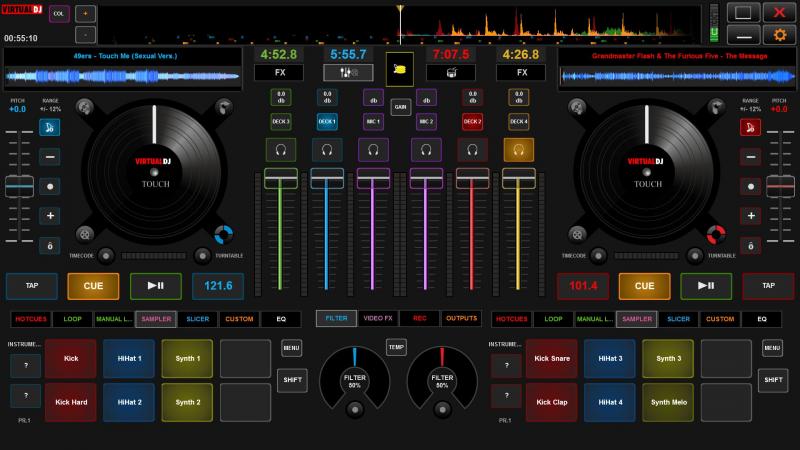 Decided to use your multi touch skin as a base for a 4 deck version with 2 mic's routed permanently to 2 decks aswell, to gain use of effects on them.