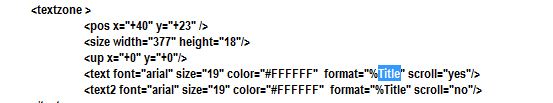Although (it seems) all skins provide the BPM field for a track on them, I've developed the need to see the "on-file" value for the BPM, instead of just the value that the track is currently being played at. My skin scrolls the Artist and Title fields across the top and I'm assuming it's derived from the XML code shown in the pic. All of these I find are SINGLE values (%artist, %title, etc). Is there a way to change this to accommodate multiple fields? If so, I'd like to add "bpm" to the Title field that scrolls in the window.