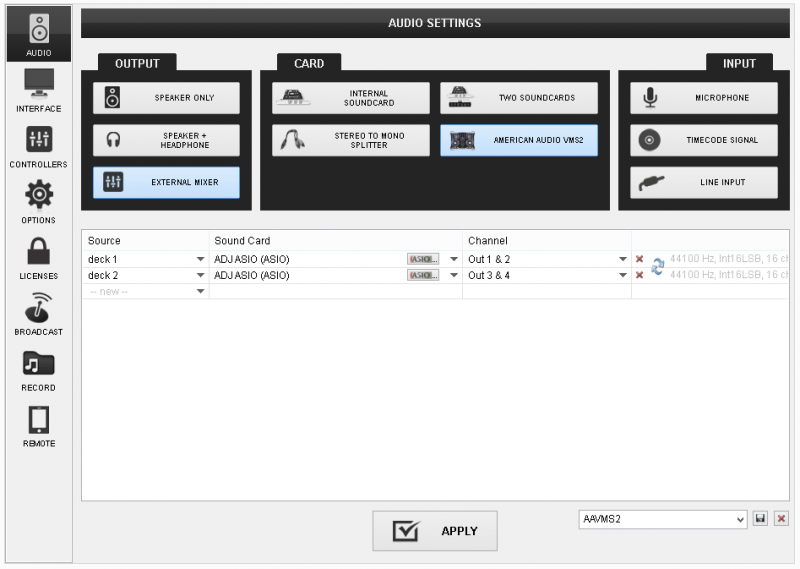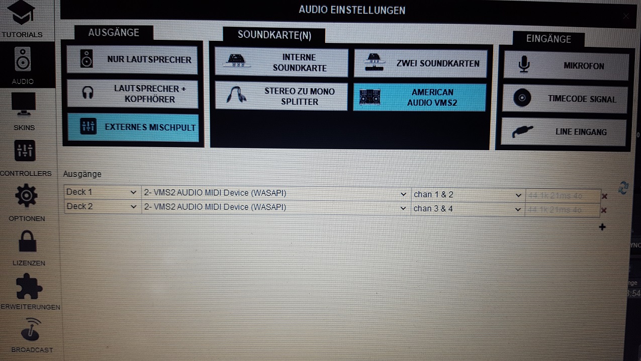 Wenn du WASAPI nutzen willst, oder musst, was passiert wenn du bei Deck2 auch Channel 1+2 einträgst?