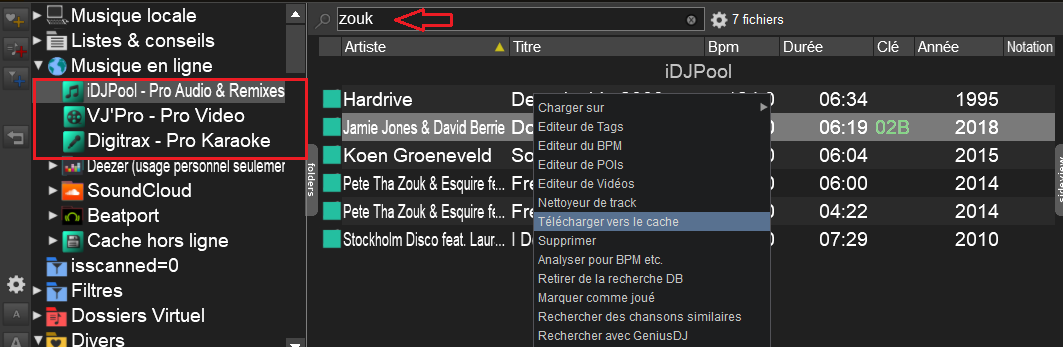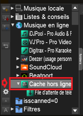 le dossier cache ce trouve dans la dossier VDJ, et en lançant vdj dans le browser de gauche clic sur la flèche musique en ligne => et le dossier cache en ligne se trouve en bas Et où se trouve le cache pour utilisation en hors ligne, je ne le vois pas sur VDJ