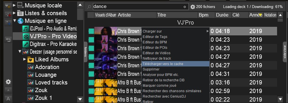 tant que votre abonnement est actif. Vous pouvez même mettre en cache toutes les chansons que vous voulez sur votre ordinateur et les lire dans VirtualDJ sans connexion Internet.