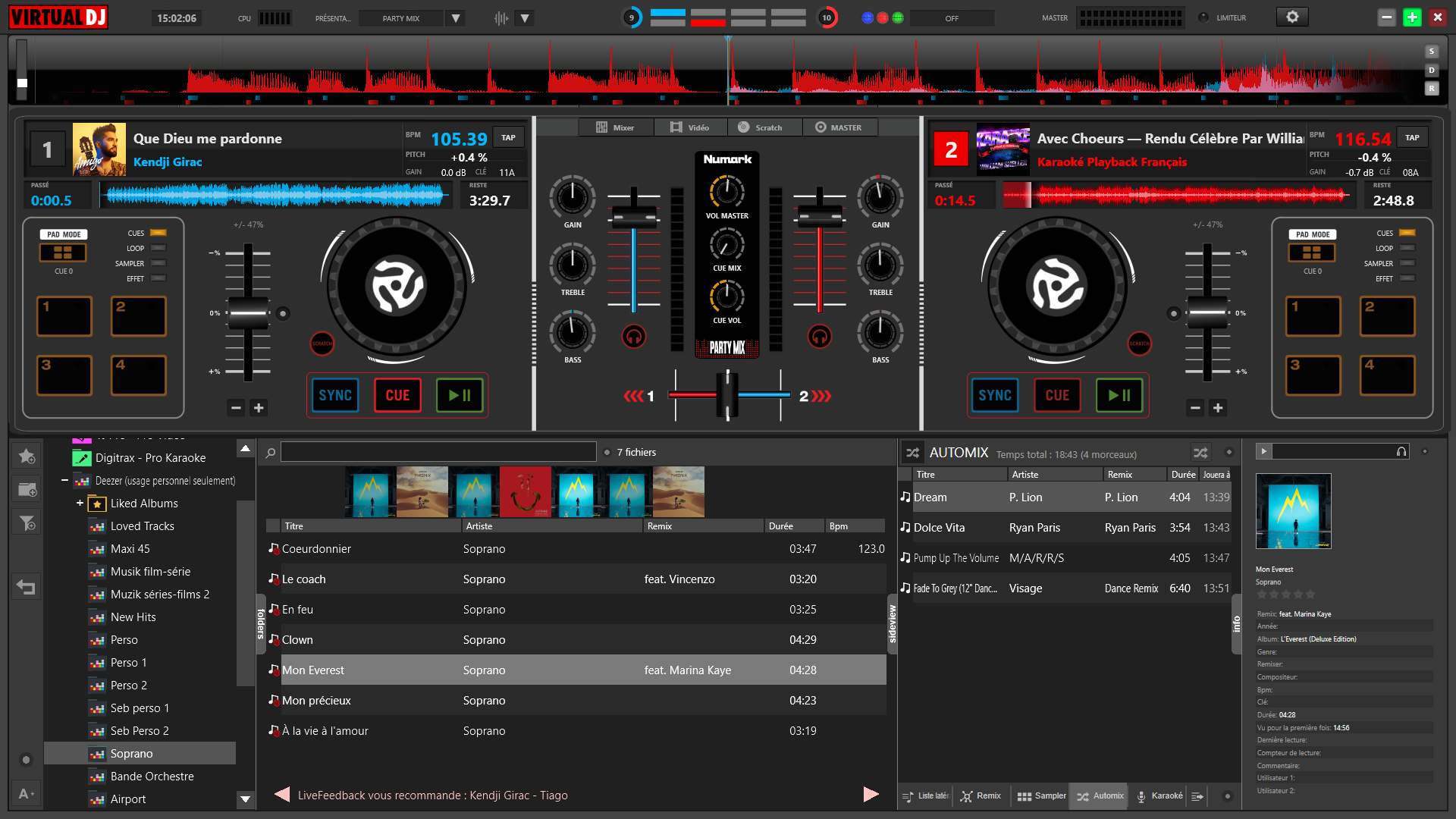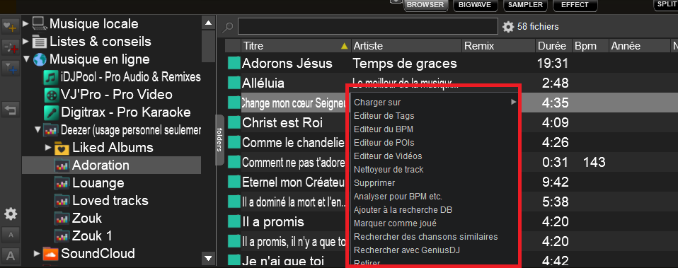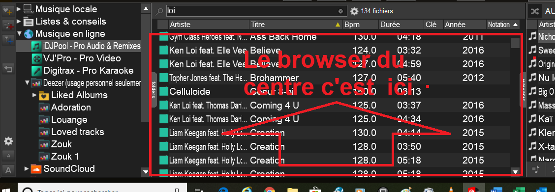 vois-tu afficher les titres de Deezer dans le browser du centre vdj ?