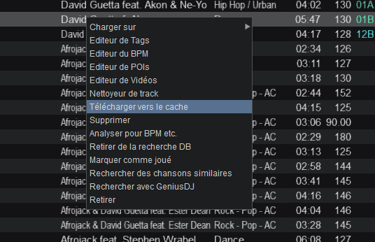 Clic droit sur le track à télécharger, puis téléchargez vers le cache
