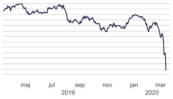 Norwegian kroner vs Euro (Corona + Oil crises = perfect storm):