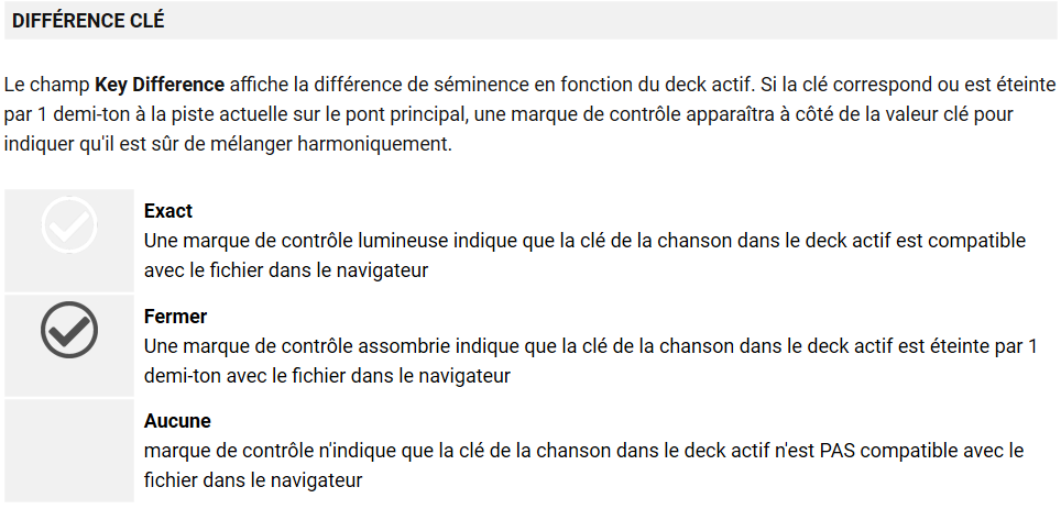 Quand les tracks sont cochés dans le browser à coté de la clé, cela veut dire que le track est compatible "harmoniquement" (je ne sais pas si ce terme existe) avec le track en cours sur la platine.