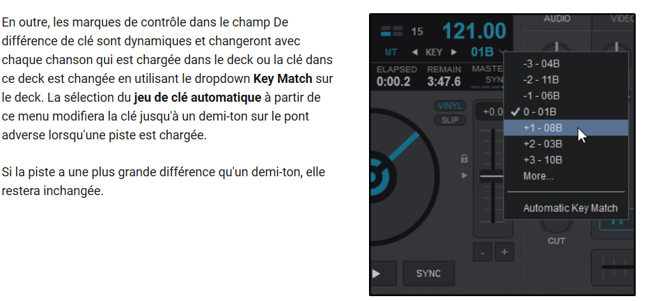 Alors si j'ai bien compris si les titres collent harmoniquement, j'aurais la mention "clé" sur les deux platines. Sinon VDJ corrigera automatiquement en +1 ou -1. C'est ça ?