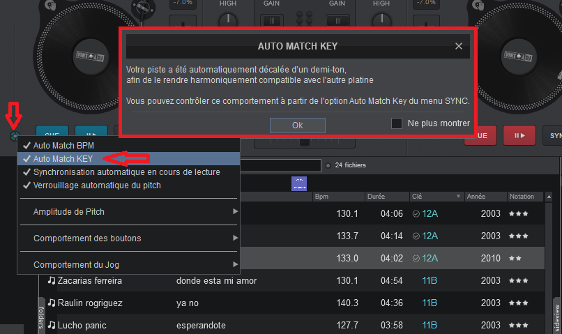 a chaque fois tu charges une titre qui n'est pas harmonique il affiche cette fenêtre Auto match kay et le rend harmonique automatiquement par vdj