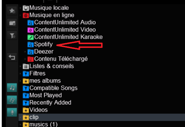 Il y a plus d'icone Spotify dans la colonne du Browser de gauche.