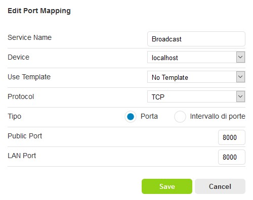 Ho aperto verso l'esterno la porta 8000 TCP l'associata con la porta 8000 TCP dell' IP del mio pc dove giro VDJ