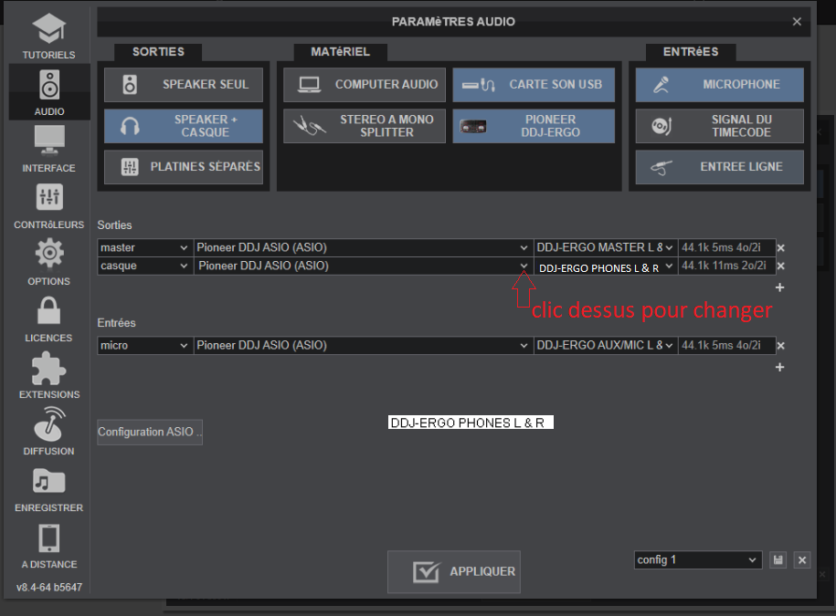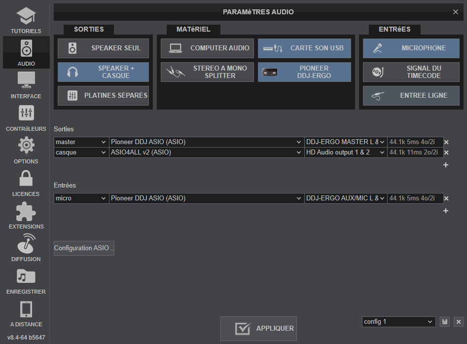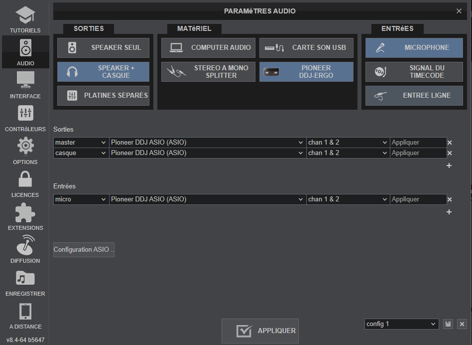 Il s'agit des paramètre qui se mettent automatiquement quand je sélectionne dans matériel "carte son usb + pioneer ddj ergo".