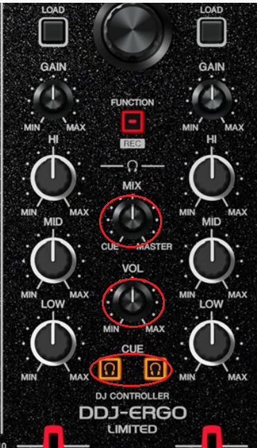 Mon ddj ergo est brancher au pc et les enceintes sont brancher au PC.
