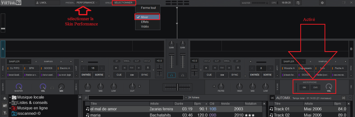 Avec la skin performance par defaut de vdj vous pouvez activé le Micro.