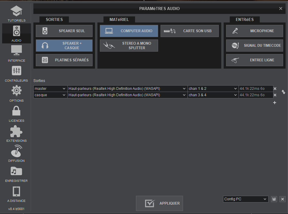 pouvez-vous nous faire voir les réglages audio de vdj