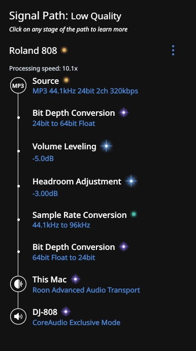 Roon upconverts 320 MP3's to full 24-bit audio using the higher sample rate from the devices sound card. It gives standard MP3s at 44Kbs a sonic boost higher than CD quality to whatever sample rate your sound card supports. Many DJ controllers now days come with a 24-bit/96K sound card that is usually never used to it's full potential because almost all the music out there still has the lower 44K CD quality sample rate. Hi-Res audio is starting to become popular. I would love to see VDJ being the first DJ application to support Roon integration maybe as a VST plugin?