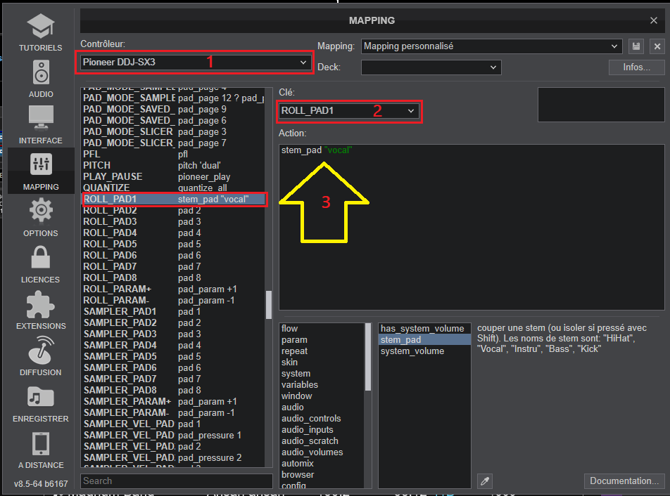 Essaie d'inséré ses actions ci-dessous dans le mapper, a la place de l'action pad1, pad2, pad3