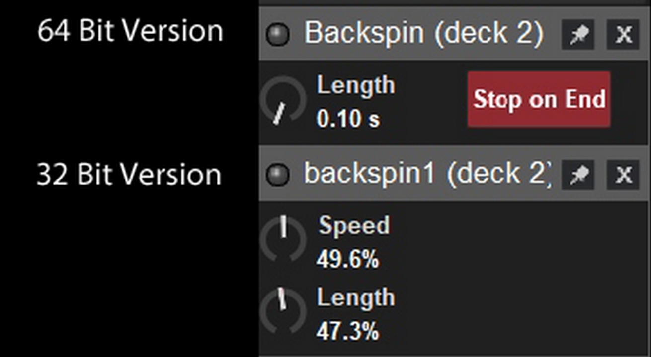 The 64bit backspin version (the only one that works with the the 64bit 2021) has only a Length adjustment. The older 32bit fx had both speed and length. I've tried to do a 32 to 64 bit conversion on the effect with not luck. Can you either convert the 32 to a 64 or make the 64bit version that works with 2021 have both the speed and length adjustments? It's the only one that sounds natural. The current version with only length sound like a melancholy backspin ha ha. Thanks and God Bless.