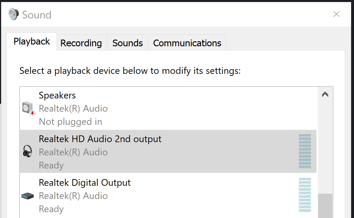 (Where the front audio output shows as Realek HD Audio 2nd output)