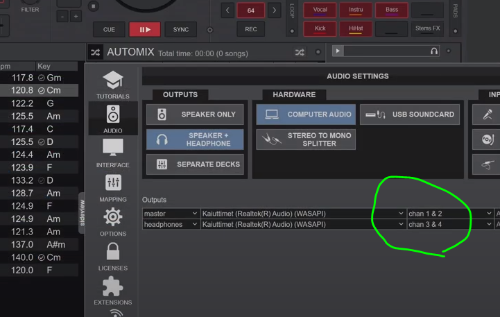 And when i choose the last 2 options, vdj automaticly change hardware from computer audio to usb soundcard