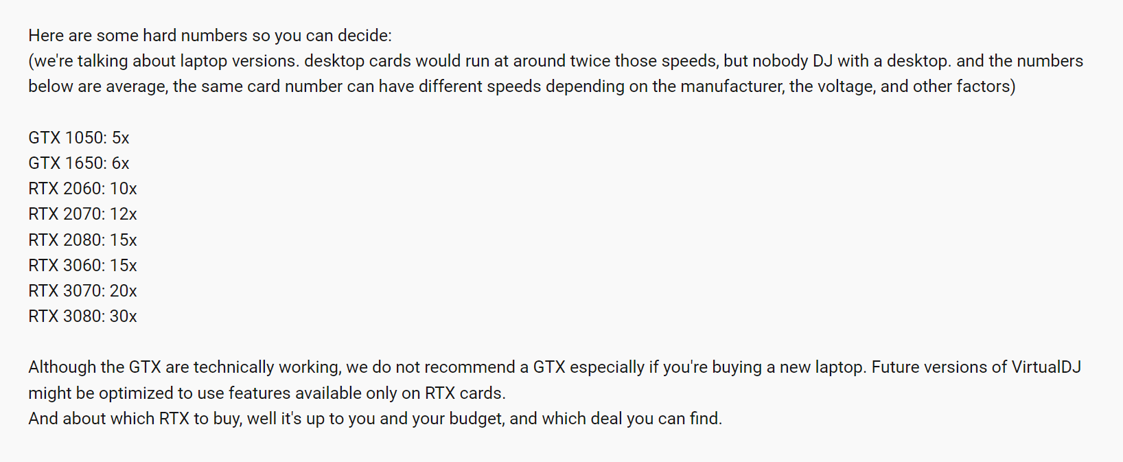 There was a previous post with a GPU stems 2.0 chart that gave the speed of each GPU card but I can't find it. Can someone post a link to it?