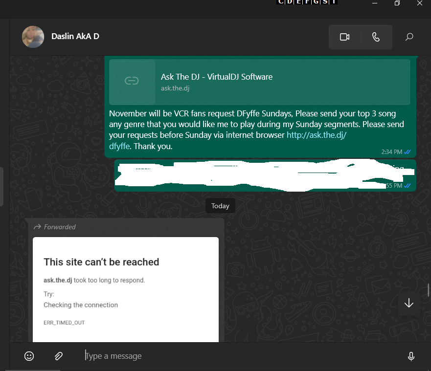 So this is weird, one of the fan having this problem is in Spain using chrome with android, one is in the UK using safari, the other is in US using chrome with android, I myself tried it with chrome on my android phone and it did not work, I notice if I use the Whatsapp link http://ask.the.dj/dfyffe it does not work, but if I go to the browser and type the same thing in the address line, it works. The others that are complaining is all using the Whatsapp link.