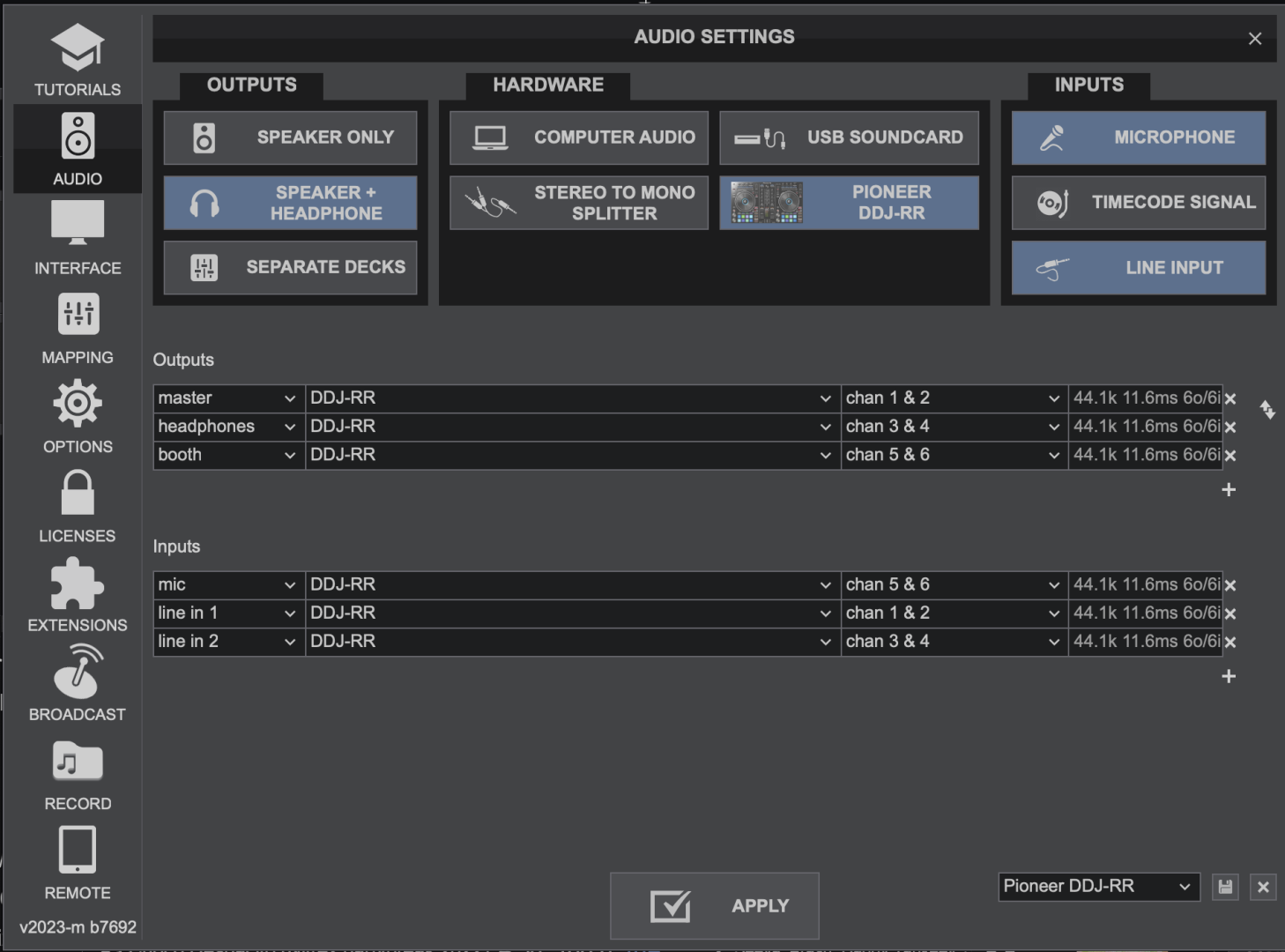 The action of the ONINIT key of the DDJ-RR, starts with .. fake_mixer on & ... . Can you change it to ... fake_mixer off & ... , restart VDJ and see if still the same ?