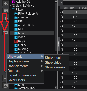 I'm an old man trying to get back in the game. I've upgraded to Virtual DJ 2021. VDJ7 had an eyeball that had a drop down box that would allow you to search your files by music, video or karaoke or all three. Does this feature still exist somewhere on the updated version of VDJ?