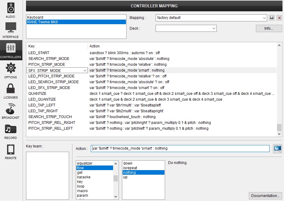 Also even the "factory default" mapping screenshot is definitely wrong since Rane Twelve MKII does not have a lot (if any) of the keys shown there.