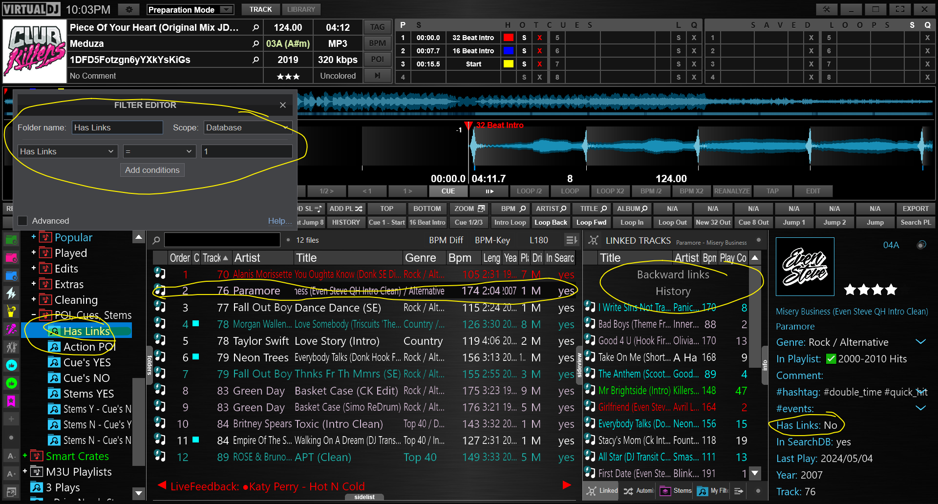 So I am looking to link up some tracks and before I started I setup a smart folder to just make sure I didn't have any linked track. It showed I had about 50 which I assume I did with accidental dragging & dropping because I didn't link any tracks on purpose. I was able to figure out most of them and did unlink them. But I still had 15 tracks that are saying they have links but I can not unlink them. I have a picture attached: