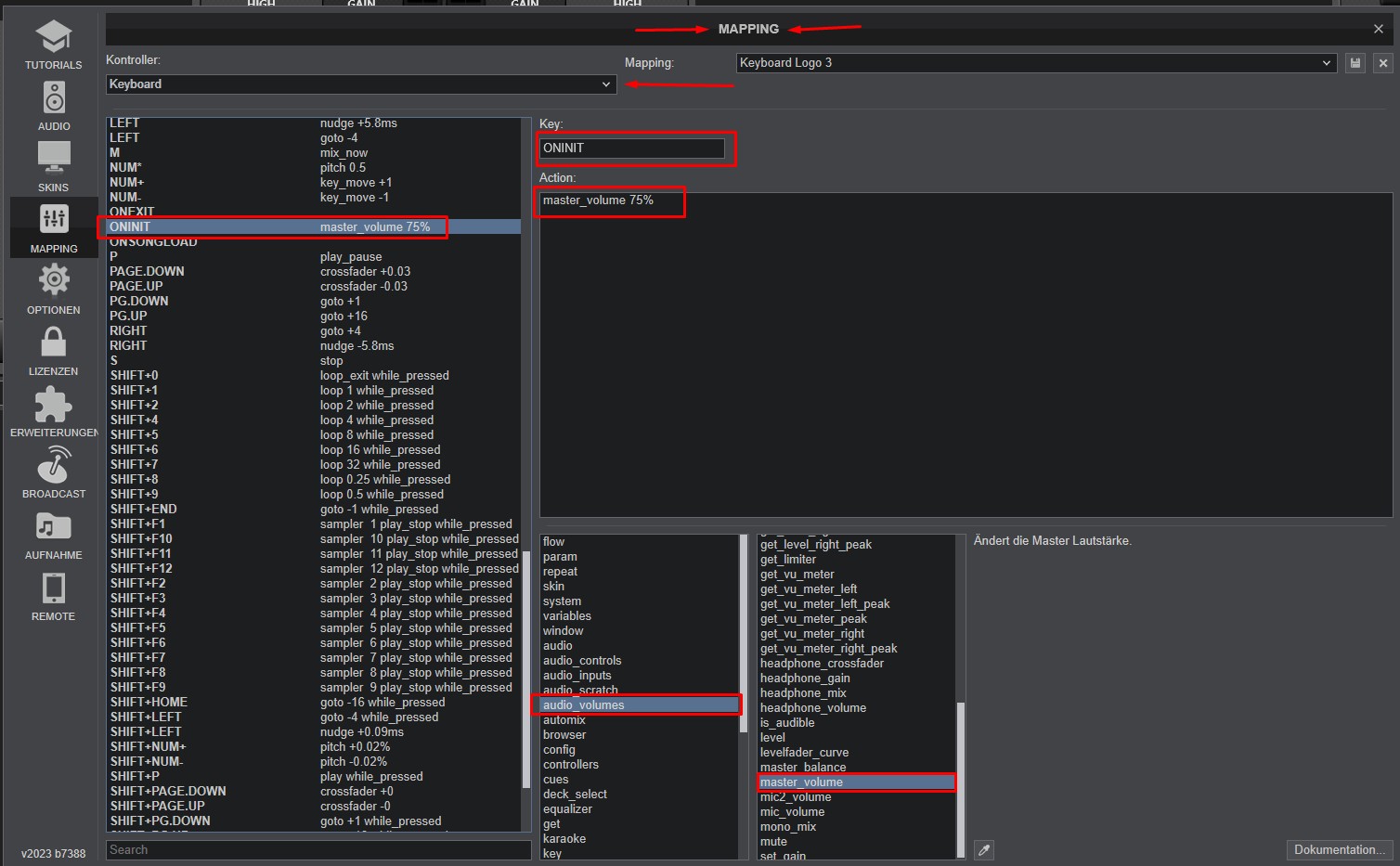 <map value="ONINIT" action="master_volume 75%"/>