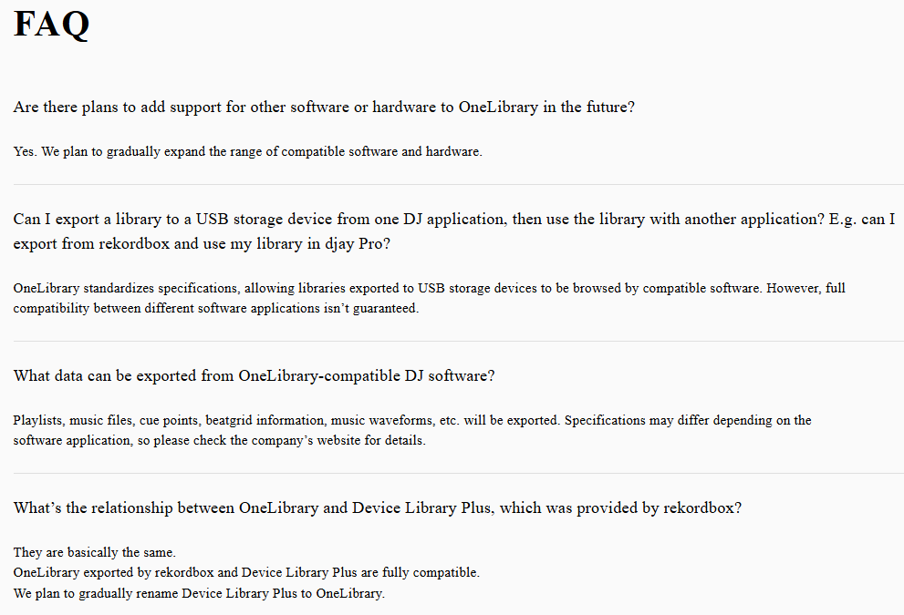 OneLibrary standardizes specifications, allowing libraries exported to USB storage devices to be browsed by compatible software. However, full compatibility between different software applications isn’t guaranteed.